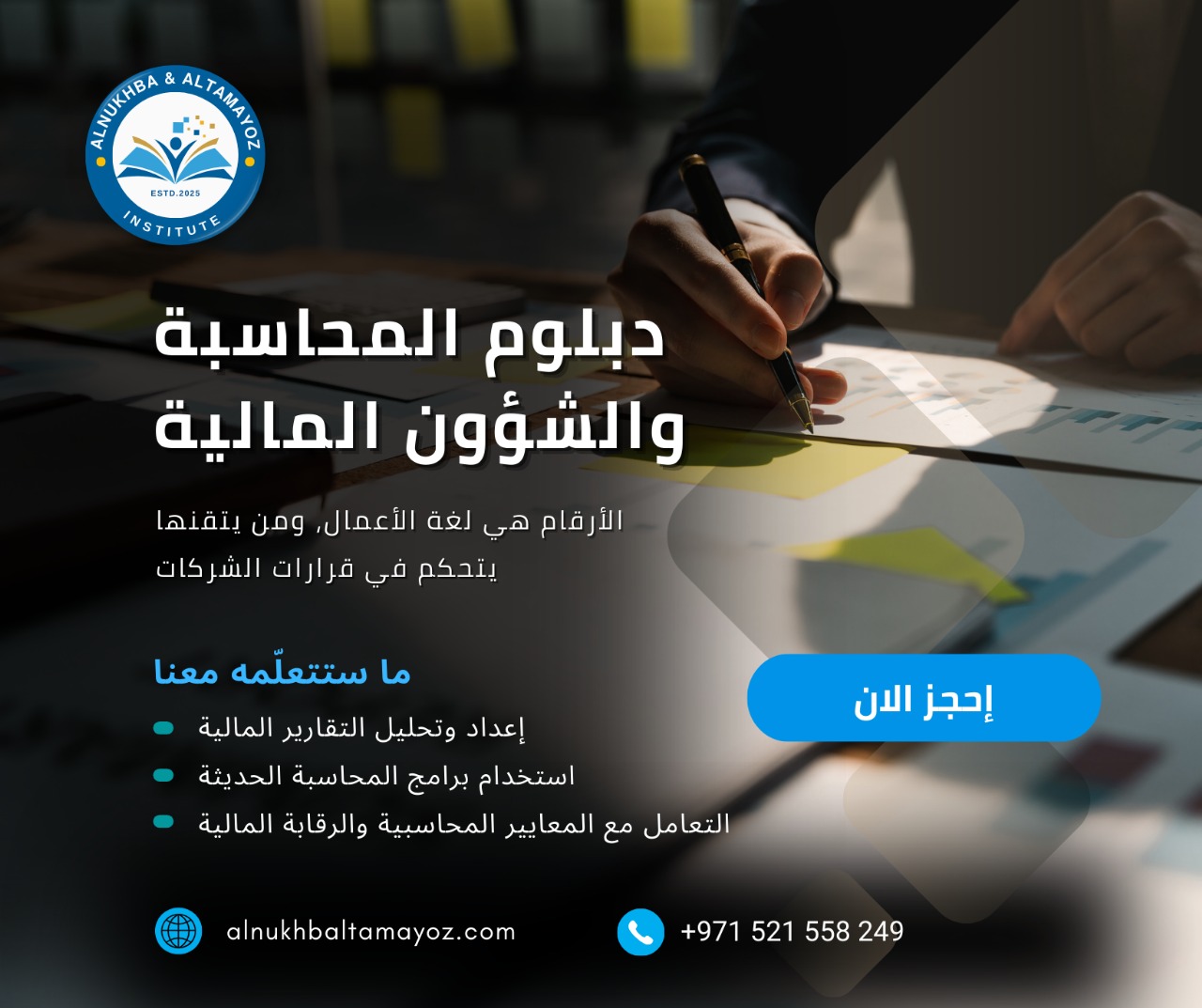 إحجز الآن: دبلوم المحاسبة والشؤون المالية
